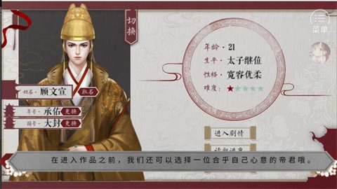 4、随后挑选一个自己心仪的帝王形象,并与之开启一段故事。