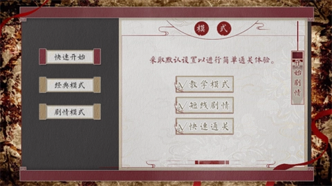 2. 本游戏包含经典模式与剧情模式这两种模式,玩家只需直接点击“开始”,便能开启游戏剧情。