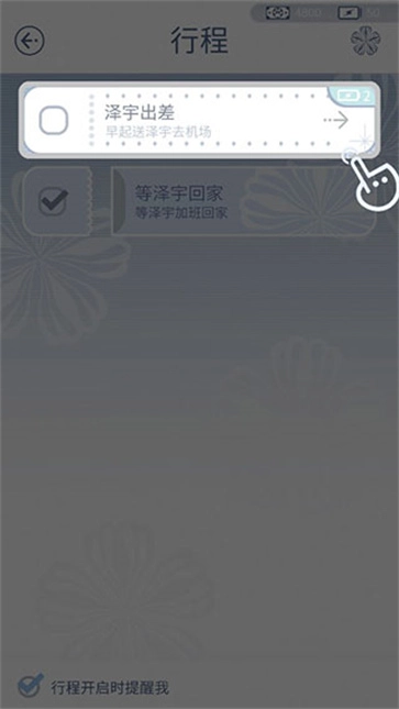 3、为避免忘记送NPC丈夫赵深宇出差,提前规划好一个行程。