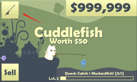 6、当您的等级提升至2级,点击左上角的鱼竿图标,即可解锁更多鱼竿。