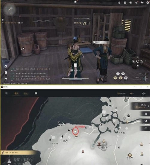 1. 首先前往村口燕慧的家,进入房间后与燕慧交谈,燕慧所处位置见下图。