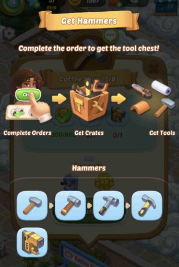 当你积攒到一定数量的金币或工具后,能够点击对应的页面来完成房屋的建造。