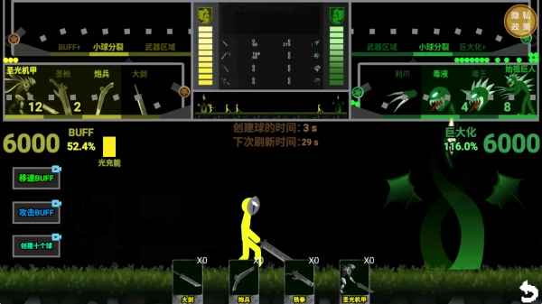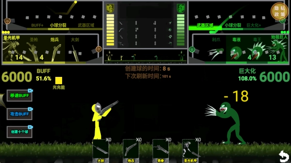 2、每一位火柴人士兵都配备有专属的武器系统,且具备独立的成长路线。玩家能够自由地装配技能组件,打造出独具特色的战斗阵容。