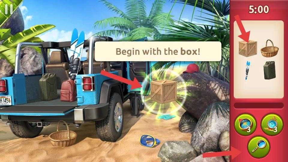 2、在关卡场景里,依照“Begin with the box”这一提示,去寻找木箱之类的物品。场景右侧设有物品列表,你还能借助放大镜等道具,来辅助自己进行搜寻。