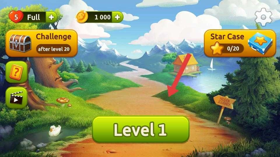 1. 打开游戏,点击“Level1”,启动第一关物品搜索。此时,界面上会呈现金币、爱心等元素,同时还有“Challenge”“Star Case”等功能选项,一切就绪,准备迎接挑战。