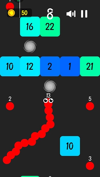 4、游戏界面如下图所示,通过移动蛇,吃掉红色的球会慢慢的长大;