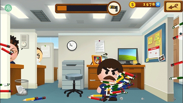 2、轻击以瞄准,点击BOSS将铅笔丢到他身上进行发泄;
