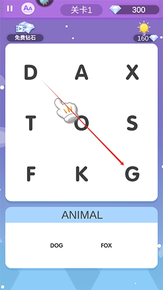 2. 通过滑动来连接字母,让它们组成一个单词。