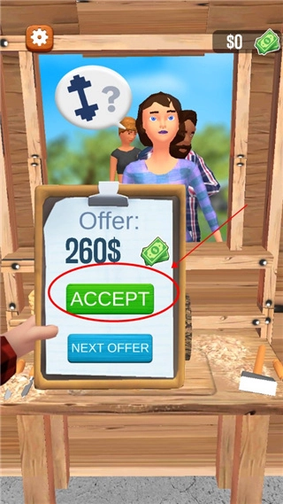 2、接着再次点击“accept”,开启木工艺制作流程。