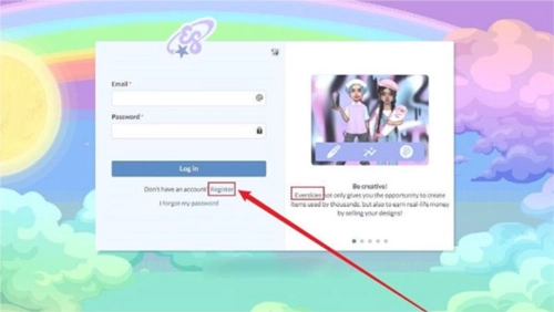 1、找到everskies的“点击进入”并打开,如以下图示,点击【Register】开启注册流程。