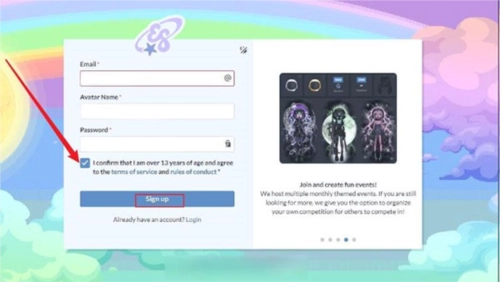 3、如图片所示,勾选同意【注册条款】,随后点击【Sign up】完成注册。