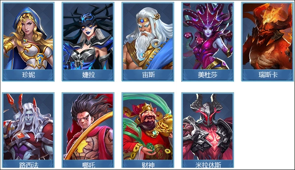 阵容搭配方案二包含:关羽、波塞冬、埃及艳后、财神以及阿努比斯。