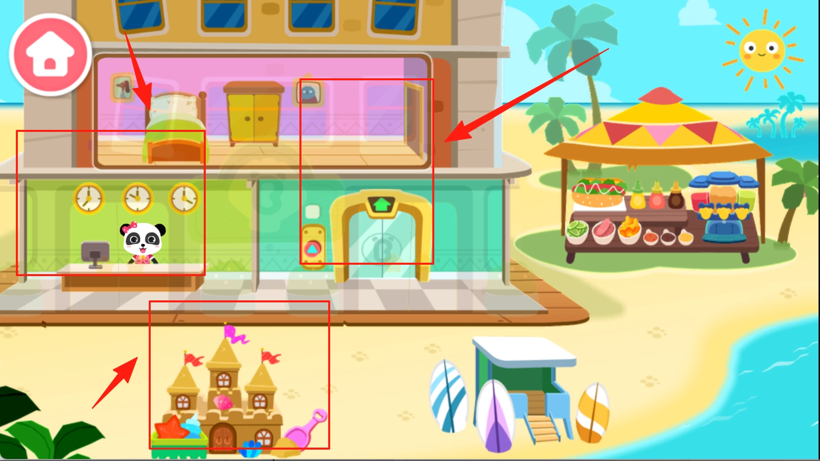 1、真实旅行体验:完整模拟酒店入住、沙滩游玩等旅行全流程。通过6大度假场景,让孩子足不出户感受旅行乐趣。