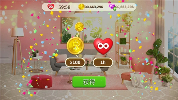 3、充满刺激与魅力的3拼图匹配游戏!通过玩拼图收集硬币,用这些硬币打造你理想中的家居设计!