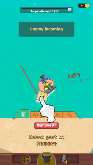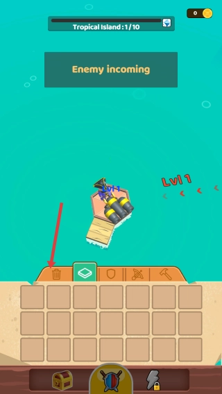 3、迎击准备:完成布置,应对“Enemy incoming”,推进Tropical Island关卡。