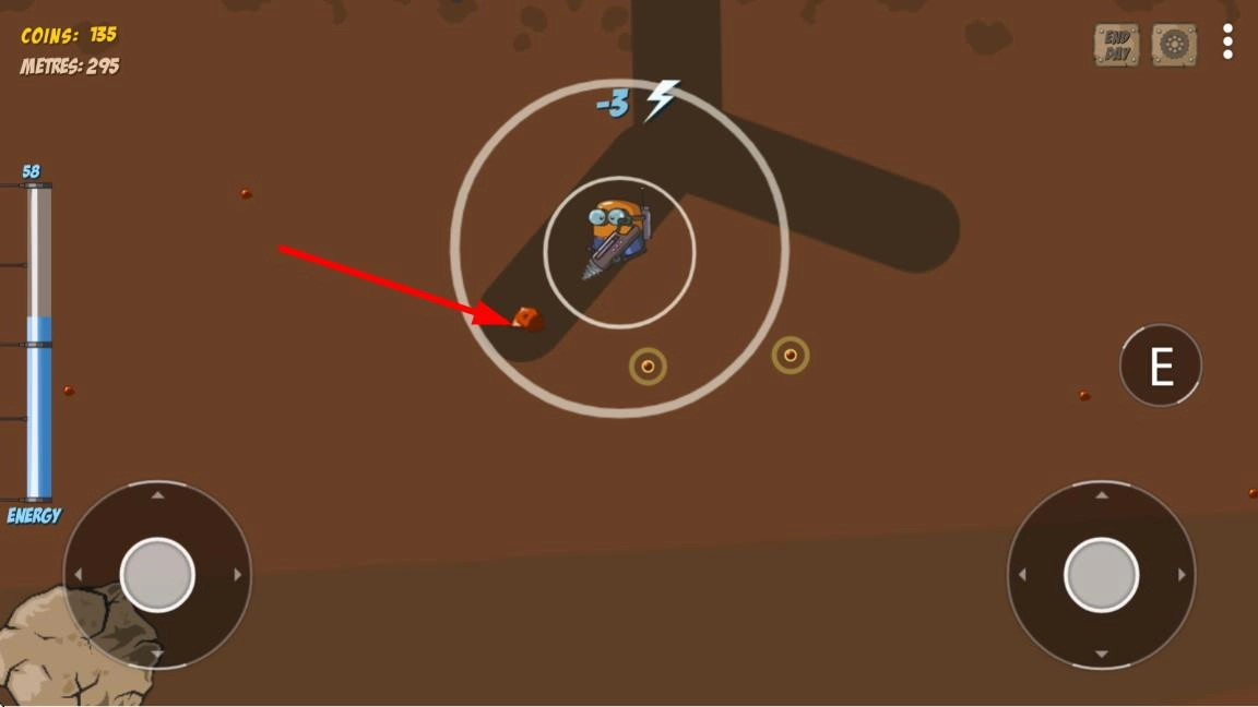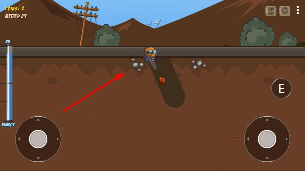 1、进入界面后操控钻地车向下挖掘,滑动屏幕调整挖掘角度,长按屏幕加速钻探,注意岩层硬度条,超过负荷会导致钻头过热。