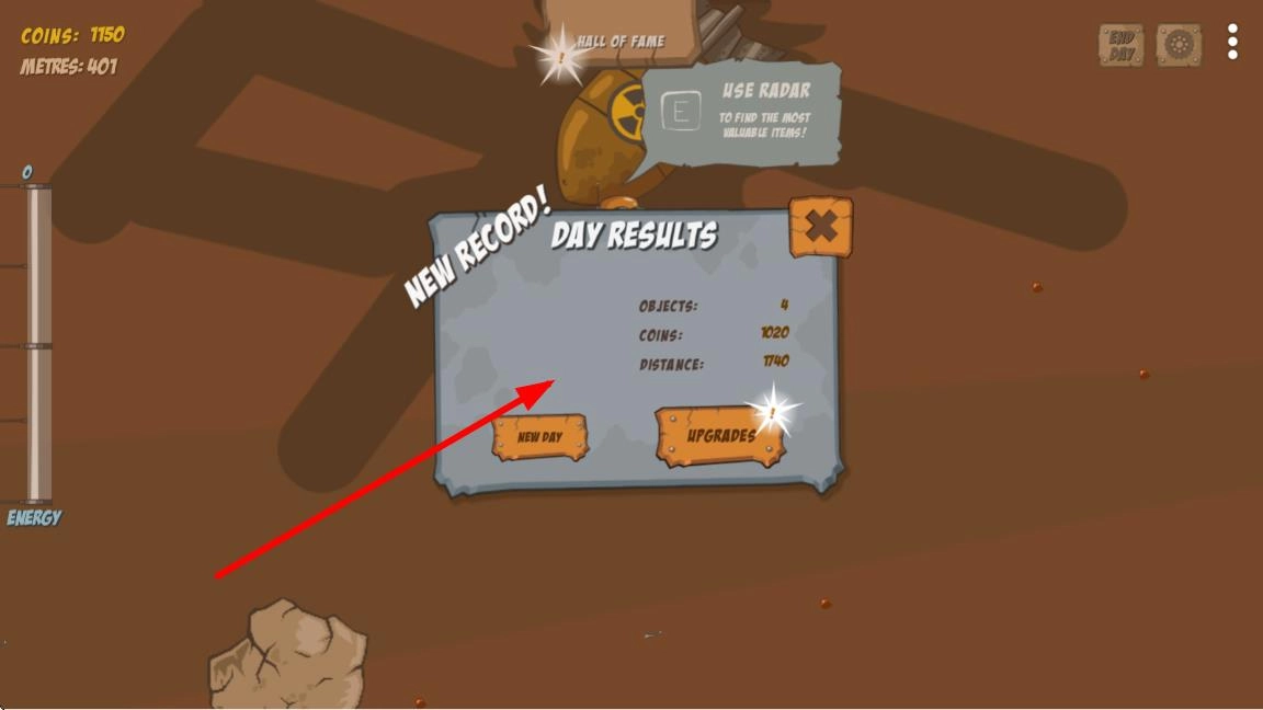 3、赚取金币后升级钻头硬度、钻探速度等属性,解锁「合金钻头」「反重力推进器」等高级装备,挑战深度挖掘记录。