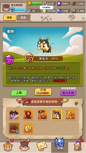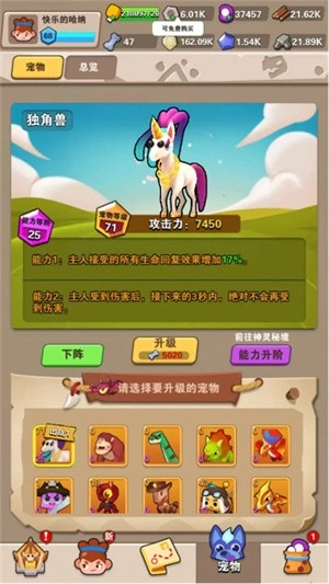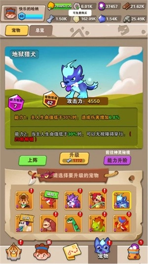 1. 所有宠物初始攻击力一致,可通过升级来提升其攻击力。