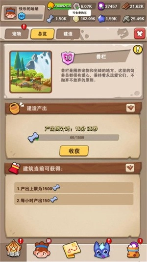3、对兽栏进行升级,能够缩短兽粮产出时间并提高产出上限。