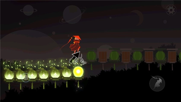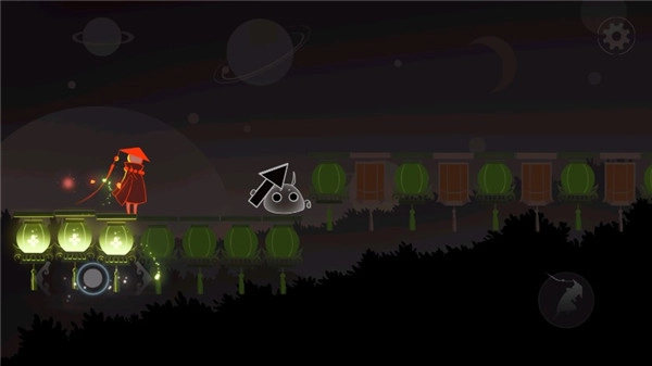 5、轻点右侧的【人形图标】即可实现跳跃动作,通过点亮全部灯笼,成功抵达终点,从而完成本关卡。