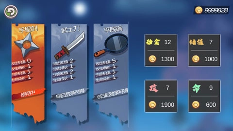此外,大家不仅要掌握操作与技巧,像手里剑、武士刀、平底锅这类武器的挑选,同样是游戏的关键要点。强化拾金、储值、攻击以及命中属性,能极大地助力你闯关推图。