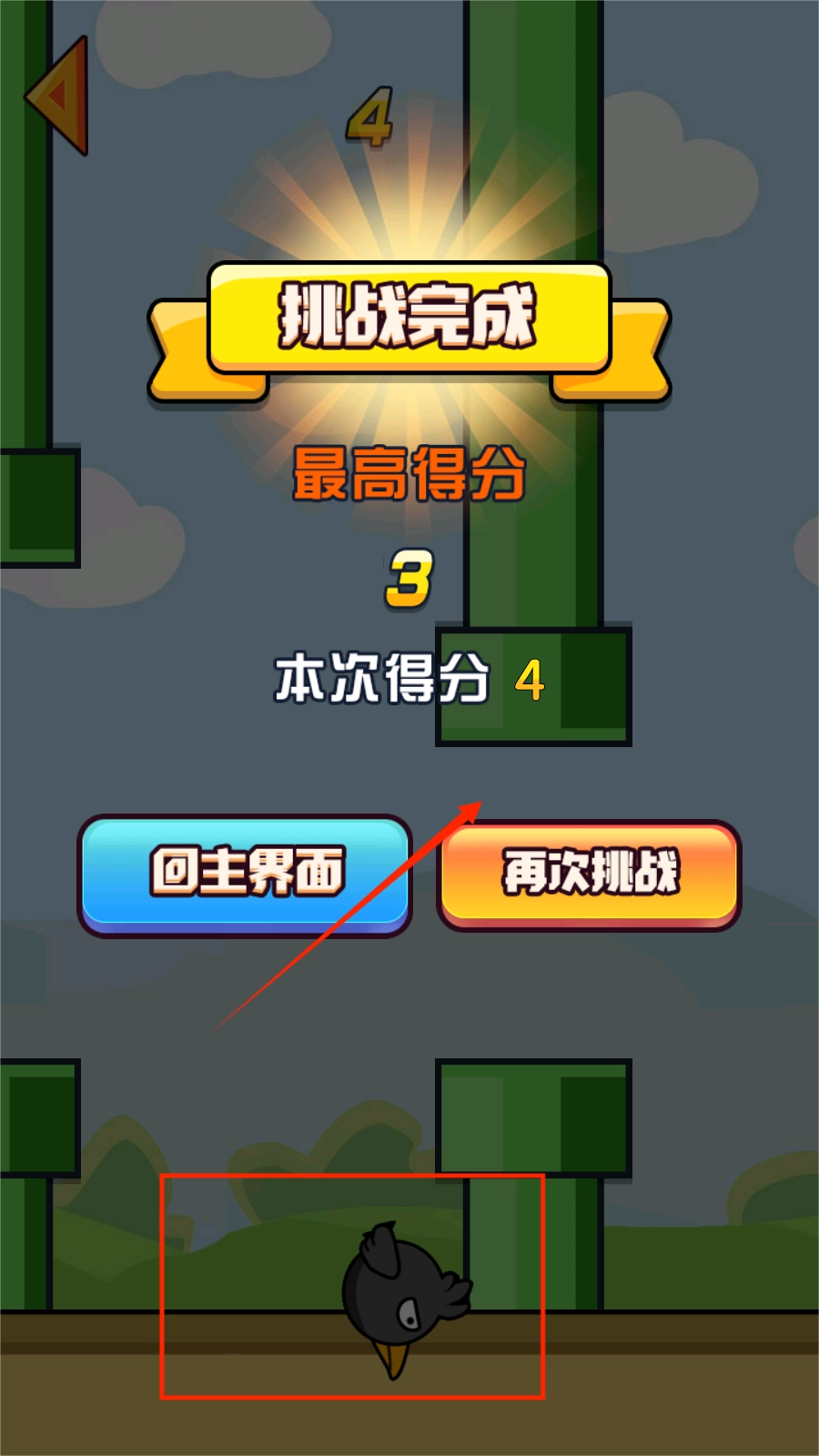 2. 在游戏中,需操控小鸟进行上下跳动,使其顺利穿过障碍物。若小鸟掉落或触碰到障碍物,游戏即宣告失败。