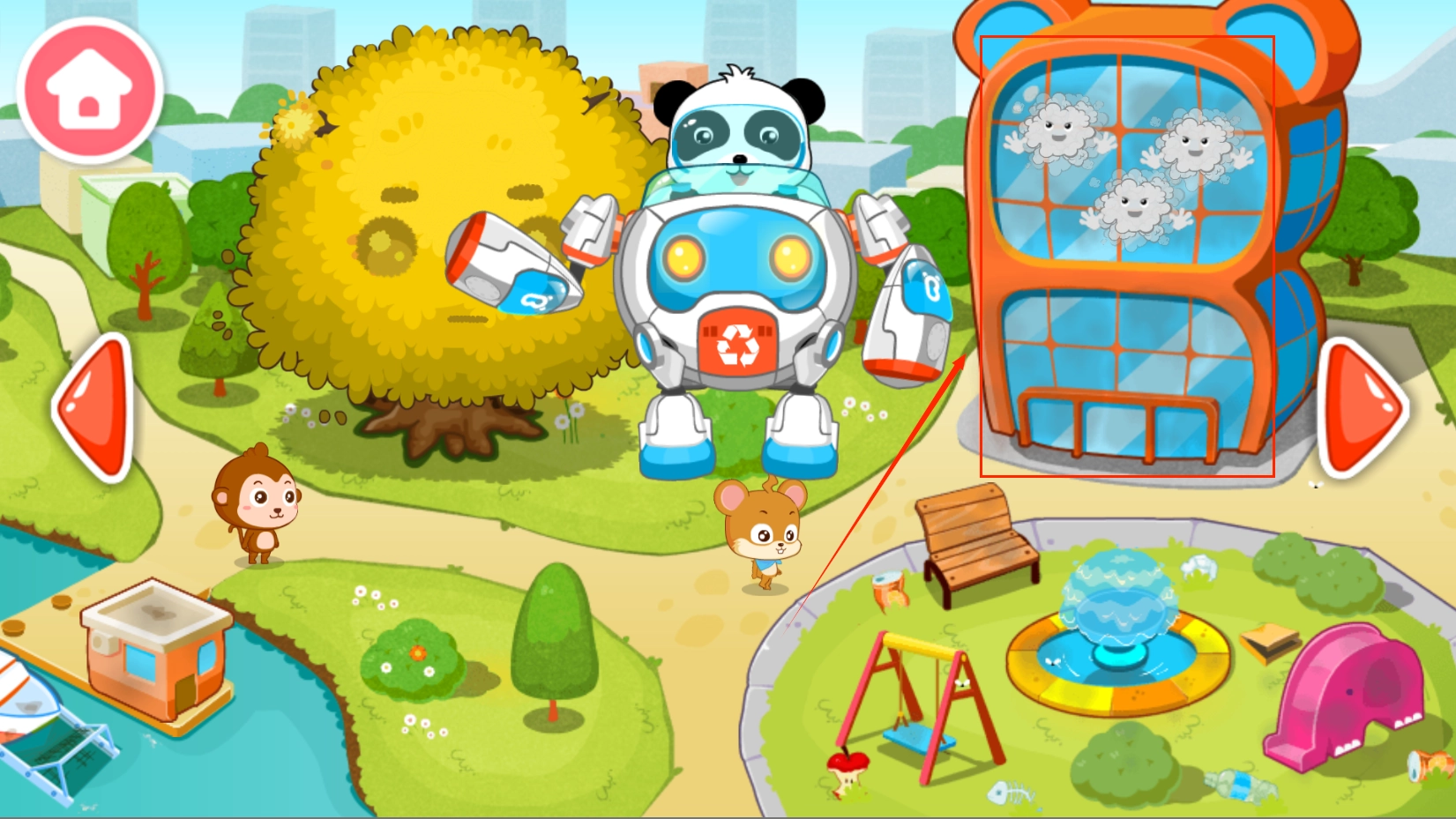 3、大楼已经清洗完毕啦,接下来让我们切换到下一个场景,继续争当环保小达人哟。