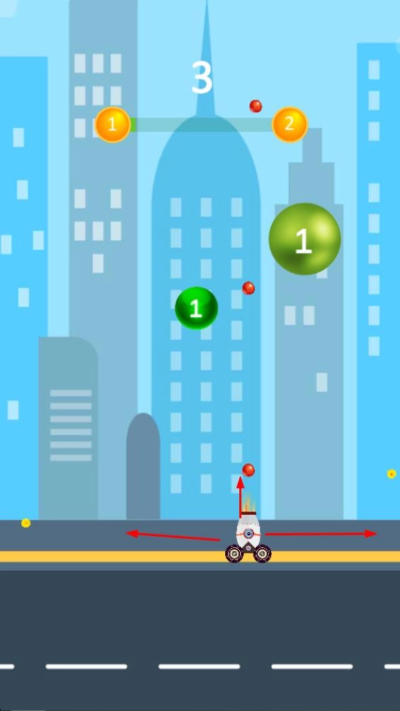 1. 操控大炮弹射小球:通过滑动手指来移动大炮,调整至合适角度后,弹射彩色小球。借助物理碰撞原理,使小球在场景中不断反弹,力求摧毁更多的目标球,以此完成基础弹射任务。