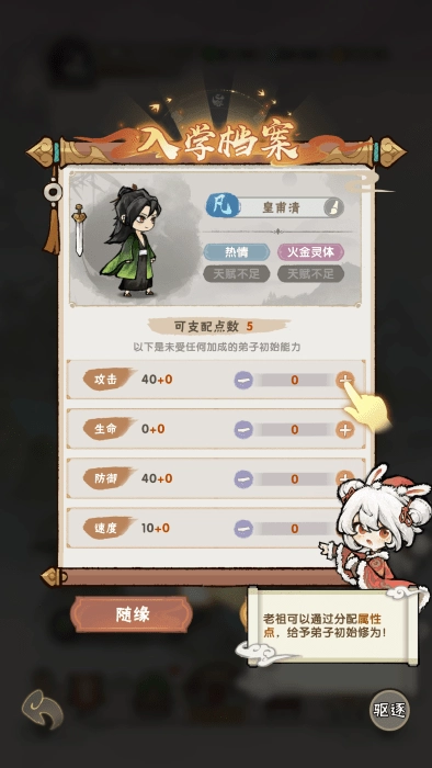 弟子的品质越高,所能获得的初始属性与先天词条就越好。