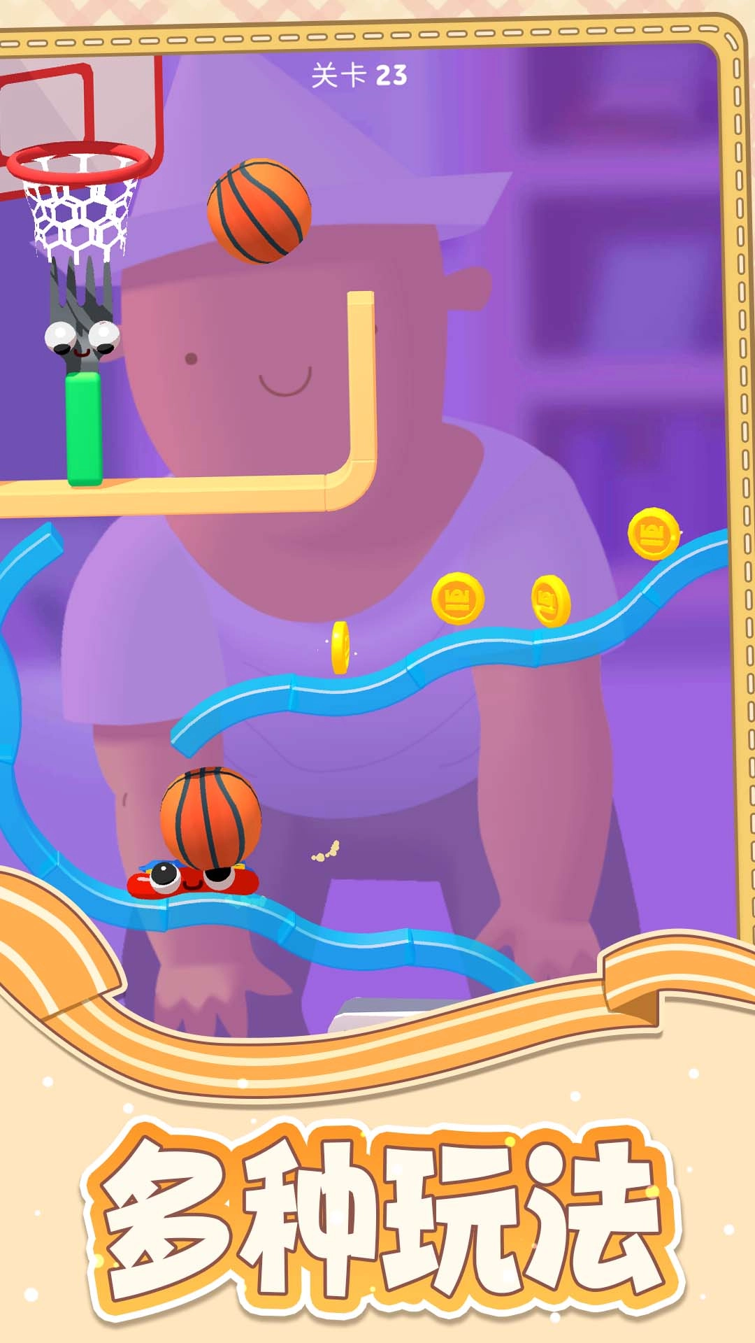 3、通关关卡即可领取奖励,积攒足够资源就能开启隐藏玩法。就像篮球关卡,通过用香肠投篮的方式,来获取特殊奖励。