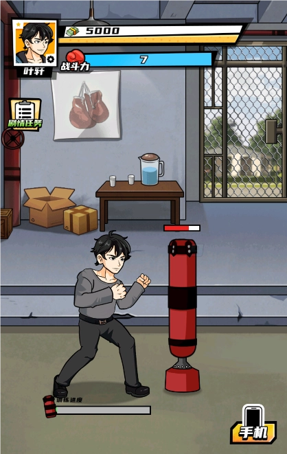 3、踏入拳馆,只需轻点屏幕对沙袋发起攻击,就能提升自身战力。随着进程推进,沙袋会变得愈发难以攻克。