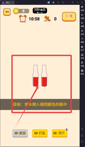 1. 基础倾倒操作:玩家点击水瓶来控制液体倾倒方向,把同色液体汇聚到目标容器内,以此达成关卡目标与要求。