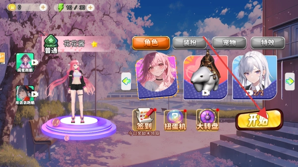 1. 在游戏的主界面中,玩家能够挑选不同的角色以及装扮等内容。待选择完毕并确认后,点击“开始”按钮,即可进入游戏。