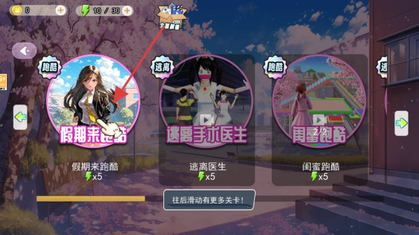 2、来到关卡选择界面,这里有假期来跑酷等关卡可供挑选,选定后就能进入相应的跑酷场景。