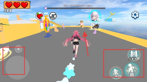 3、跑酷时,通过右侧跳等按钮操控角色移动,避开障碍,与此同时留意左上角的生命值,以顺利达成跑酷。