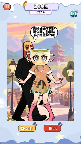 3、其他换装,如咖啡穿搭,主要依据图中背景的表情来做出正确选择,不同的选择会带来不一样的效果。