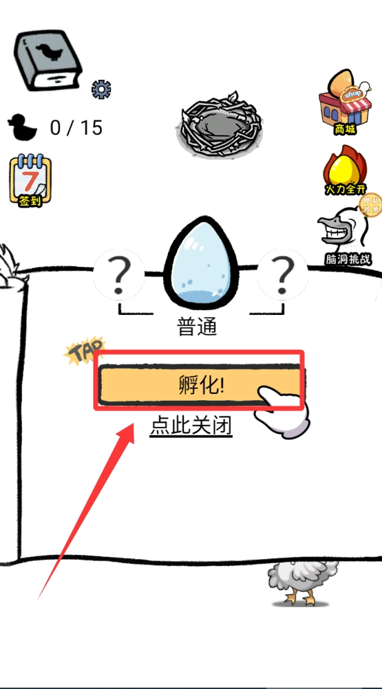 4、接着按下孵化按钮,疯狂点击,它便会裂开。
