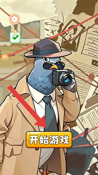 1. 需点击“开始游戏”按钮才能进入,此为休闲解谜或冒险类游戏的初始画面,画面上呈现出开启入口与角色设定。