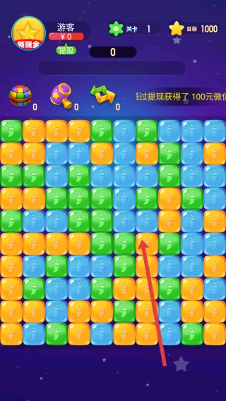 1. 在消除游戏的界面中,通过点击同色方块来触发消除操作,从而逐步累积分数,向着关卡1设定的1000分目标迈进。玩家还能够合理规划方块的点击顺序,以此提高消除效率。