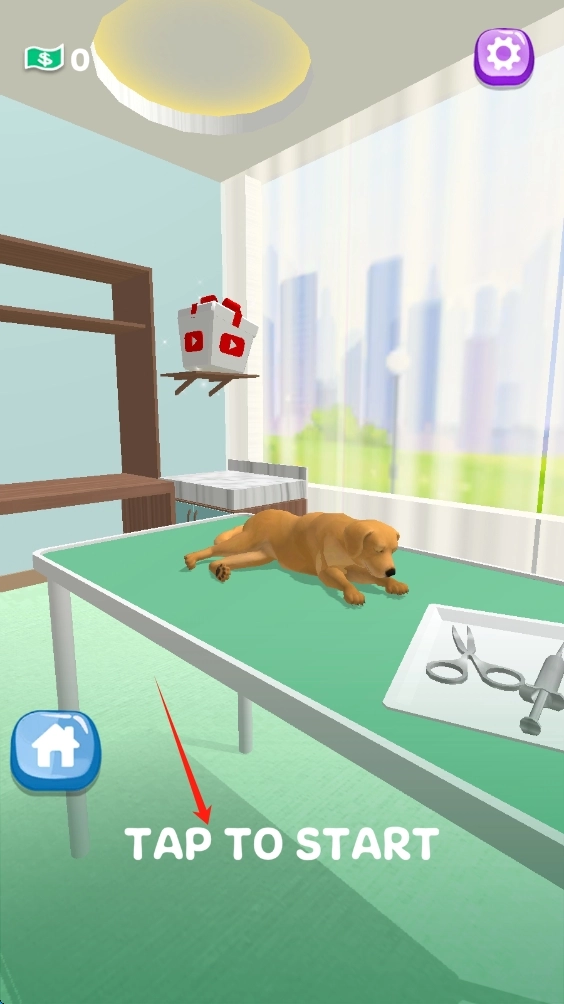1. 轻点“TAP-TO-START”,开启宠物护理之行,踏入宠物诊疗室,点击“开始游戏”。