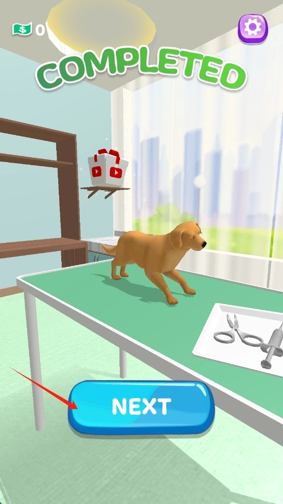 3、完成护理操作后,点击“NEXT”,即可进入下一项宠物护理任务,持续照顾宠物并提升自身能力。