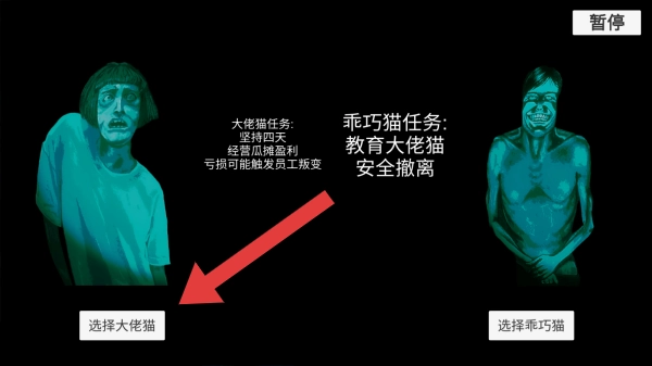 2、在游戏里,选择大佬猫、乖巧猫以及两个恐怖风格的人物形象,对应着不同玩法模式的选择场景。