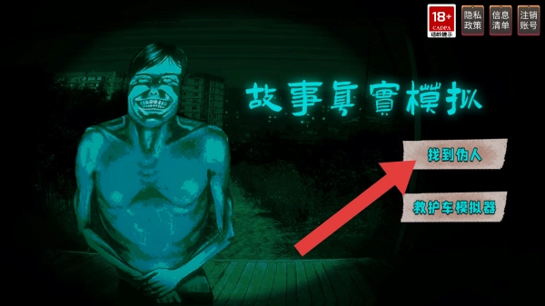 1. 在模式选项中,能找到伪人以及救护车模拟器。只有点击找到伪人,才能进入。此外,界面上还有恐怖风格的人物形象,这是一个属于惊悚题材的选择界面。