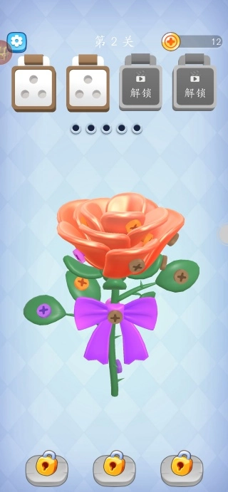 4、达成关卡目标即通关成功,一次性解锁不同颜色的螺丝以及控制用时,都是获取高分的关键要素。