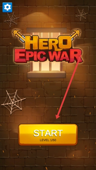 1. 启动Hero-Epic-War游戏,于游戏主界面点击START按钮,进入Level-1/50关卡,开启冒险征战。