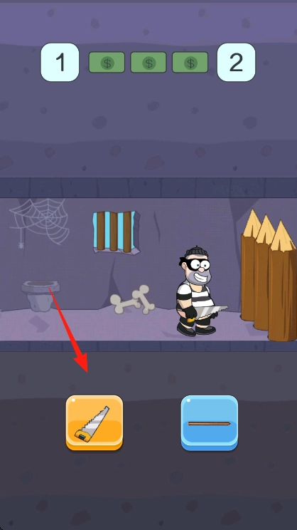3、根据需求选取道具锯子和嘴唇,通过锯木桩、开陶罐来解开场景谜题,同时收集资源,顺利完成1到2关卡。完成关卡后,将解锁新的道具与场景,助力囚犯成功逃狱。
