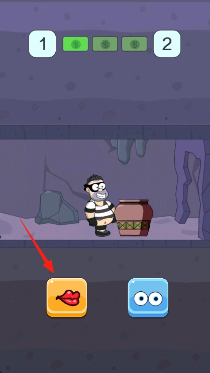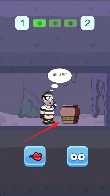 2、当遇到陶罐时,选择嘴唇道具与之互动,从而触发剧情,获取线索道具。接着,使用眼睛道具进行观察,寻找逃狱路径,同时注意避开陷阱,以此推进关卡。