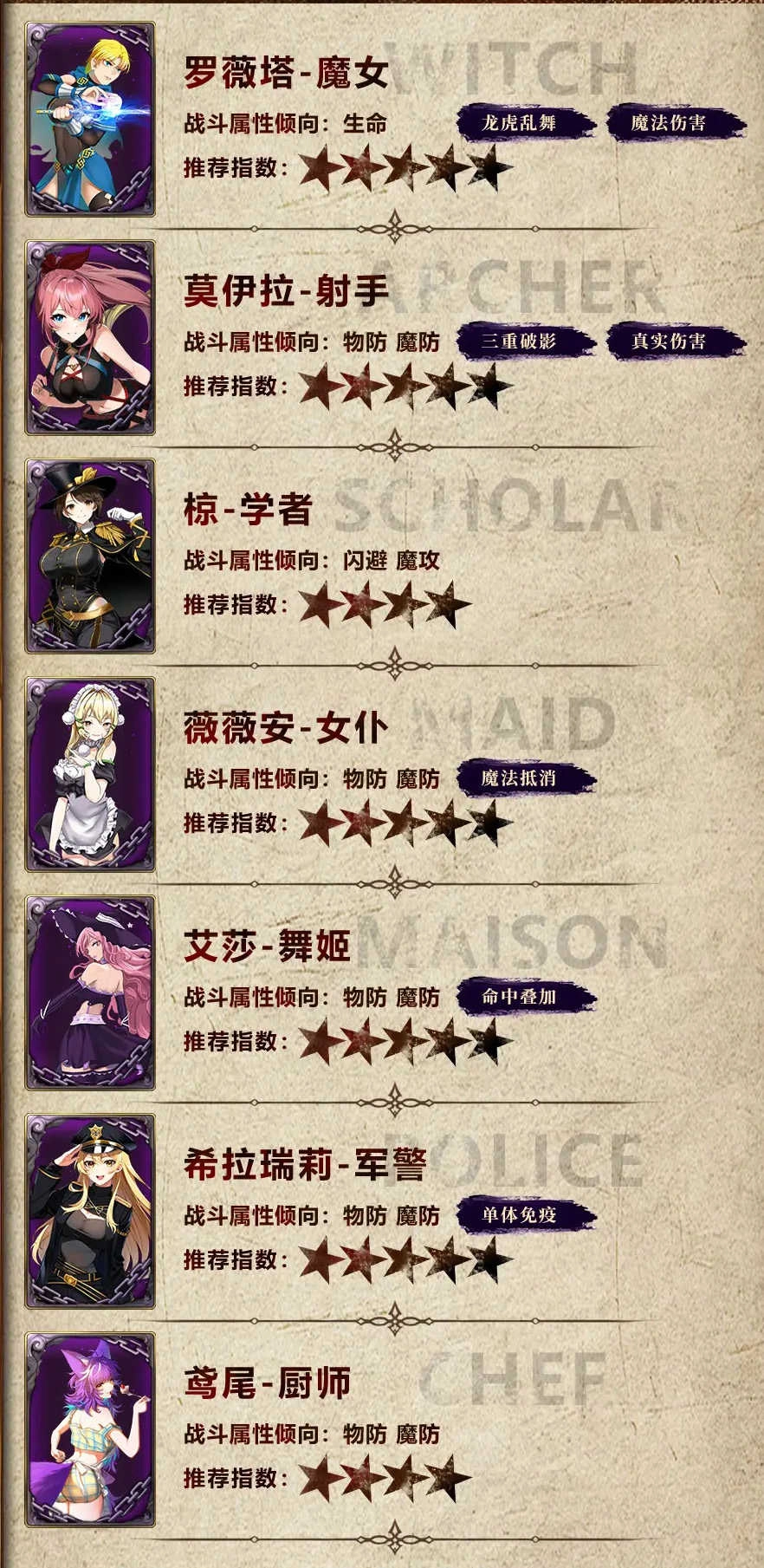 三、罗薇塔、莫伊拉、椋、薇薇安、艾莎、希拉瑞莉、鸢尾