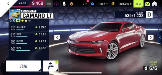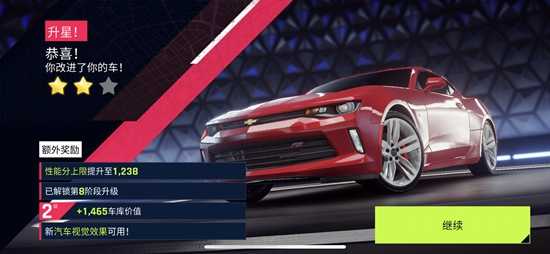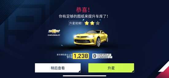 就像D级车雪佛兰科迈罗,当解锁车辆时,其性能上限为910,而在进行升星操作后,上限就变成了1238 。
