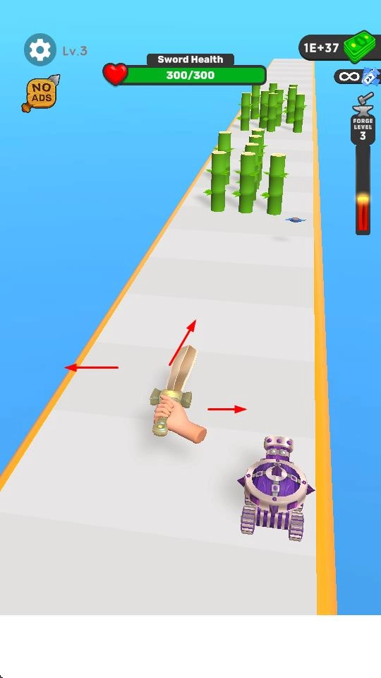 3、持剑闯关至终点:手持打造好的宝剑踏入冒险场景,借助武器特性助力穿越途中的各种障碍,躲开陷阱、冲破阻碍,依靠自身实力与合用的武器顺利抵达目的地。